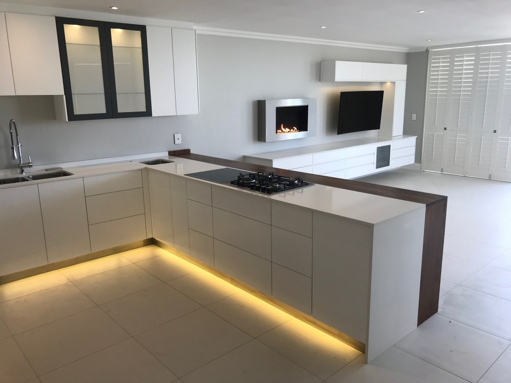 Doors & Drawer Fronts – Satin White Sprayed 22mm MDF with Finger-Grip Profile